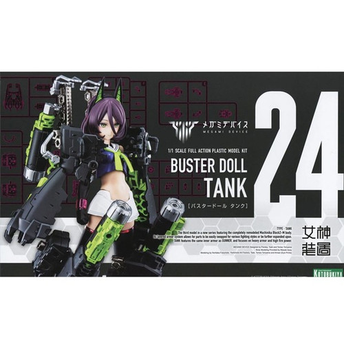 Buster Doll Tank is the third "Megami Device" kit to be equipped with Kotobukiya's new "Machinica Block 2-M" body! This new body has been completely redeveloped with major structural revisions; the structure of each part was reviewed from scratch and developed to maximize ease of assembly and extensibility through parts replacement. Her proportions have also been updated! The Buster Doll Tank, which was designed to match the new body, was conceptually designed by "Megami Device" producer Torio Toriyama; it has been designed to be assembled more systematically to allow more customization.